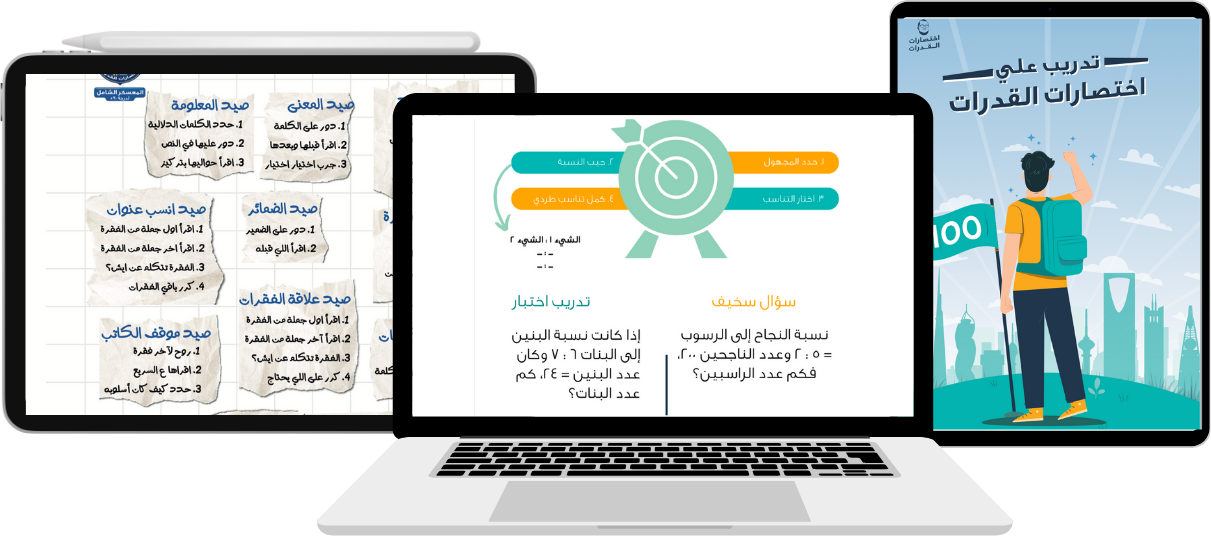 عشان تجيب درجة قوية في القدرات تحتاج تعرف الاختصارات الكاملة لحل الأسئلة الاساسية وكمان اسئلة الفخوخ.. ففي المعسكر حكون معاك خطوة بخطوة اشرحلك كل أنواع الاسئلة وحنتدرب عليها مع بعض الين ما اتأكد انك ختمت القدرات.